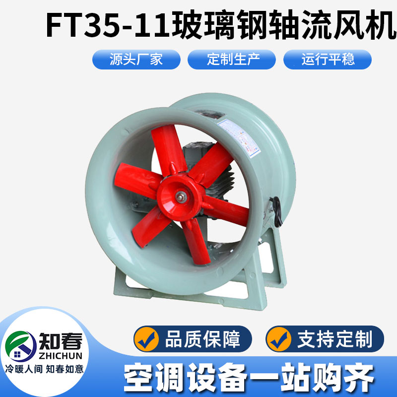 1、玻璃鋼軸流風機FT35-11型主要由葉輪,機殼,電機組成。